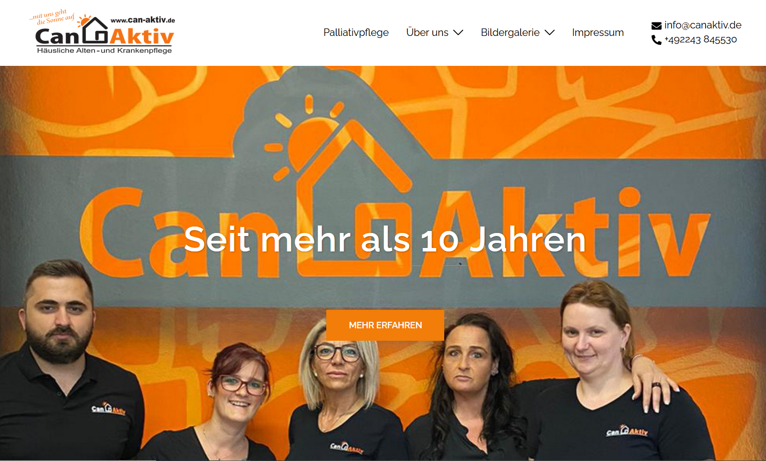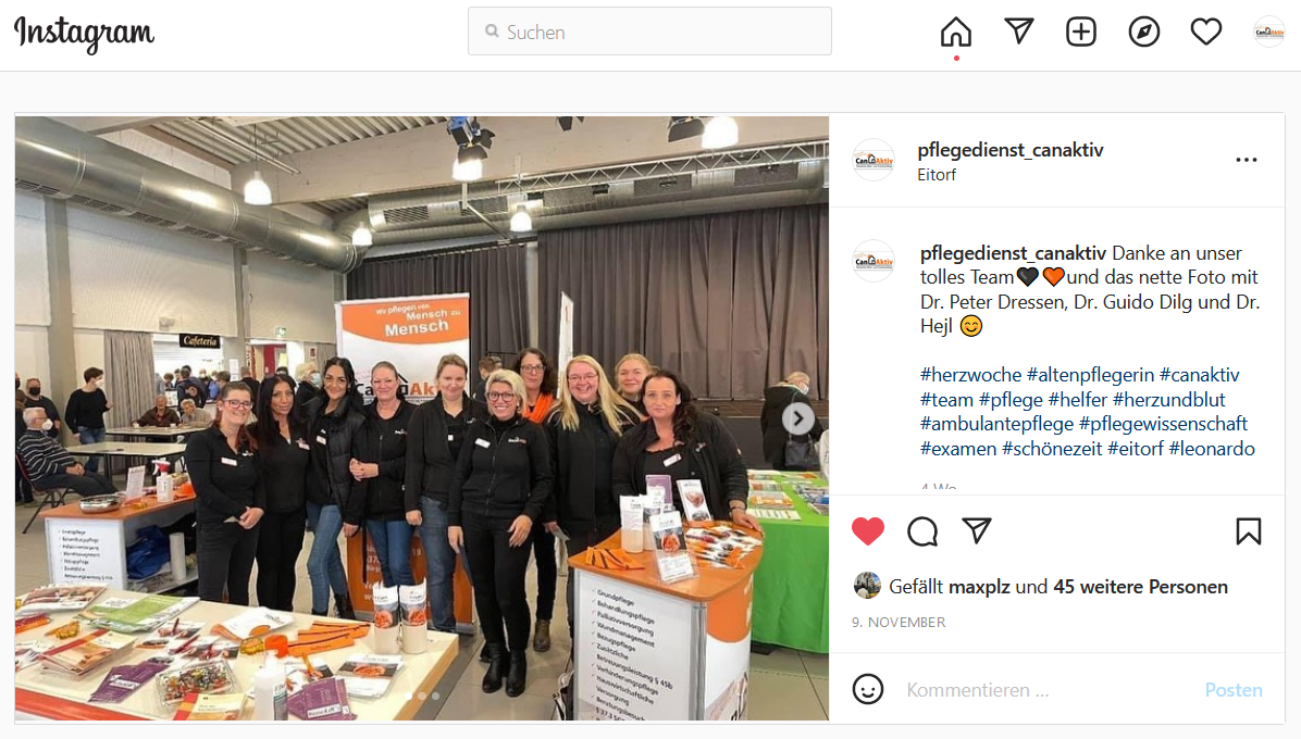 Bei dem Internetauftritt des Pflegedienstes Can Aktiv standen vor allen Dingen die Bilder im Fokus. Mit einem großformatigen Slider auf der Startseite wird der Online-Besucher direkt abgeholt: In wenigen Sekunden hat man einen ersten Eindruck vom Team, den Leistungen (wie zum Beispiel den Betrieb einer Corona-Teststation) und dem regionalen Engagements des Unternehmens bei den Eitorfer Herzwochen.
